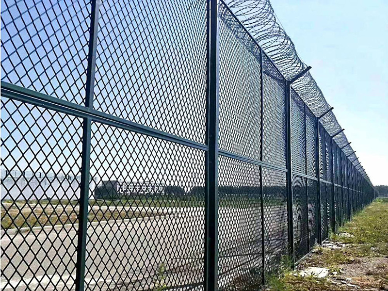 機場護欄網(wǎng)是一種采用低碳鋼絲焊接而成的網(wǎng)片 立柱 刺鐵絲(可選) 斜撐(可選)連接而成的護欄網(wǎng)產(chǎn)品。本產(chǎn)品美觀大方、防腐性好、易保養(yǎng)、防攀爬能力強。主要適用于機場周圍的隔離防護、美化及防翻越工程。本產(chǎn)品采用組裝式整體框架結構,具有堅固耐用、利于施工、安裝方便、快捷的特點。